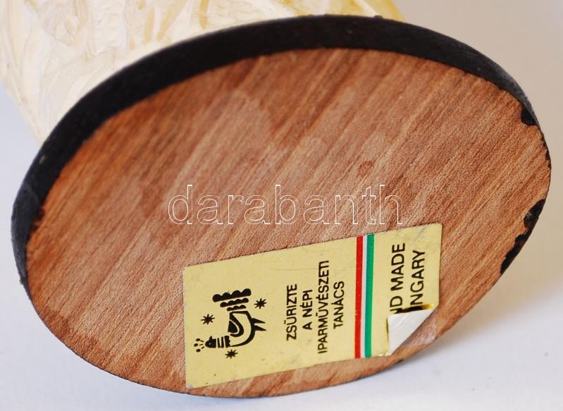 Beschreibung: cca 1970 Csontból faragott, szarvasokat ábrázoló kis iparművészeti tégely, zsűrizett /