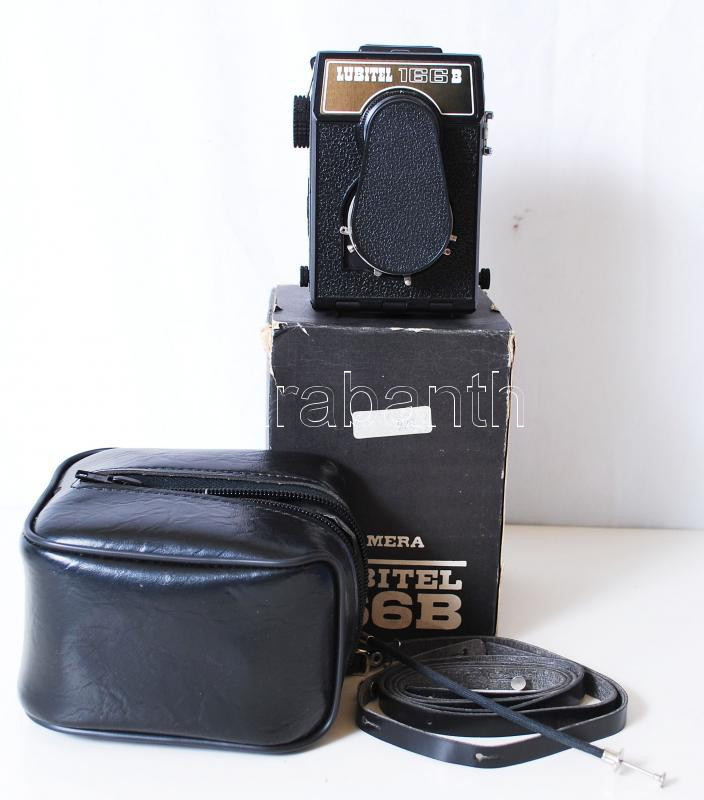 Beschreibung: Lomo Lubitel 166B TLR kétobjektíves tükörrefexes fényképezőgép 6x6-os rollfilm formátummal, lencsevédővel, tokkal, távkioldóval, eredeti dobozában /