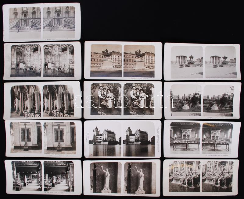 Beschreibung: 13 db régi sztereo fotó külföldi városokról