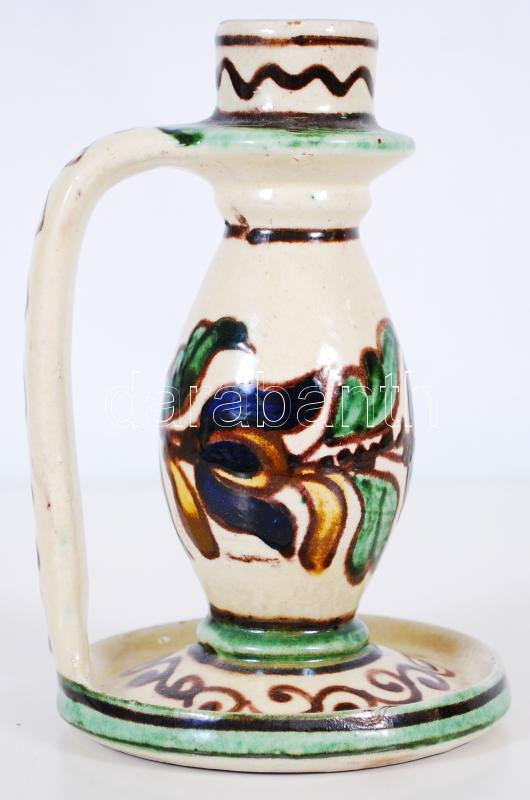 Beschreibung: Gyertyatartó, jelzett Páll Antal Korond 1974, kézzel festett, hibátlan, m:15 cm / Ceramics candlestick from Korond