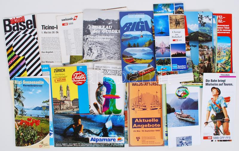 Beschreibung: 1980-1990 Modern svájci utazási prospektusok és térképek