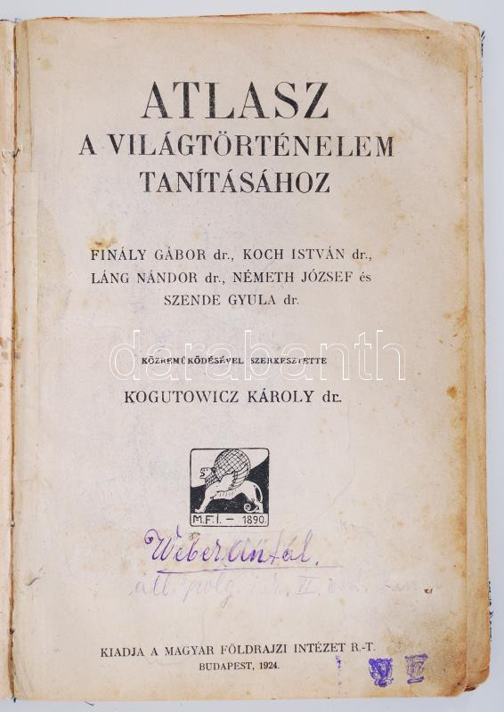 Kogutowitz: Történelmi atlasz. Magyar földrajzi intézet 1924. Kissé me... https://www.darabanth.com/de/178-Fernauktion/178.0/Andere-Sammelgebiete/Landkarten~600008/Kogutowitz-Tortenelmi-atlasz-Magyar-foldrajzi-intezet-1924-Kisse-megviselt-allapotban~II629290