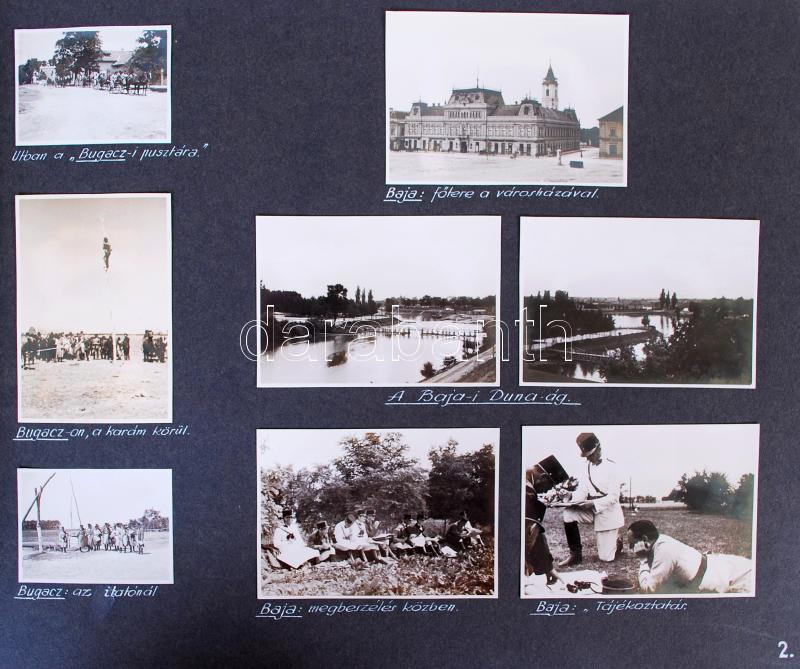 1935-1936 3 katonai harcászati út vizuális naplója házi készítésű album 134 fotóval és 143 beragasztott képeslappal, képleírással / Military trip with 134 photos and 143 postcards