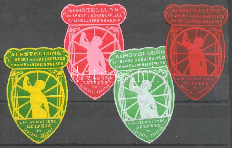 1906 Sport kiállítás, Lipcse 4 db klf színű német levélzáró https://www.darabanth.com/de/178-Fernauktion/178.0/Andere-Sammelgebiete/Paraphilatelie~600024/1906-Sport-kiallitas-Lipcse-4-db-klf-szinu-nemet-levelzaro~II628676