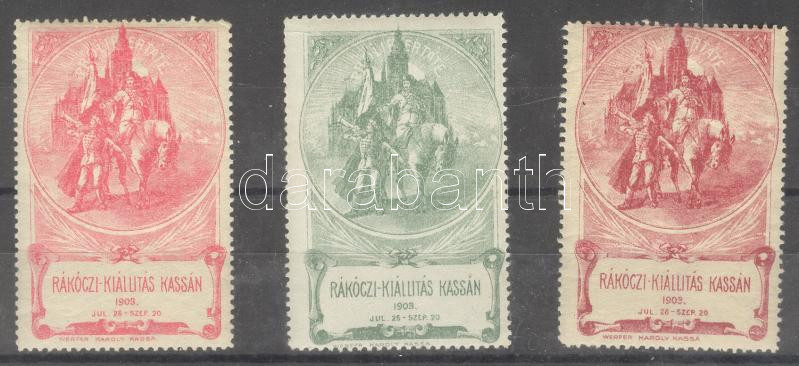 Beschreibung: 1908 Rákóczi-kiállítás Kassán 3 db klf színű levélzáró
