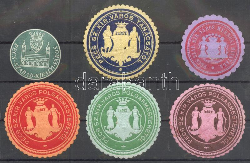 Beschreibung: Pécs szabad királyi város 6 db klf pecsétbélyeg