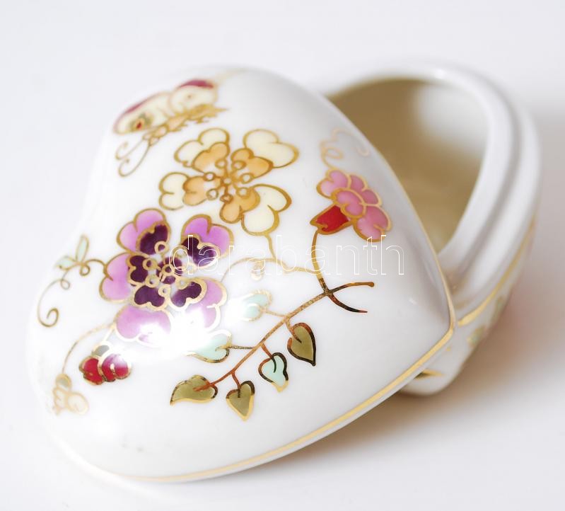 Zsolnay szívecskés ékszertartó, kézzel festett, jelzett, hibátlanok, d... https://www.darabanth.com/de/178-Fernauktion/178.0/Andere-Sammelgebiete/Porzellan~600011/Zsolnay-szivecskes-ekszertarto-kezzel-festett-jelzett-hibatlanok-d6-cm-m5-cm~II628710