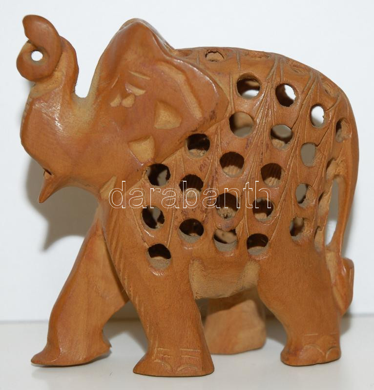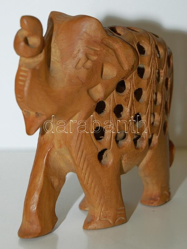 Kézzel, egy tömbből faragott fa elefánt belsejében kis elefánttal /
