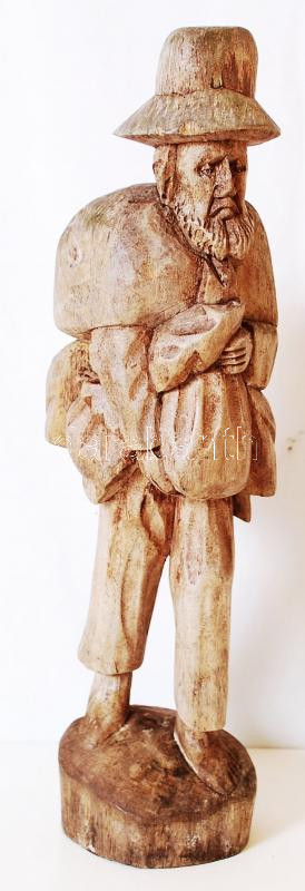 Beschreibung: Vándorló zsidó férfi, faragott fa, apró lepattanással, jelzés nélkül, m:40 cm