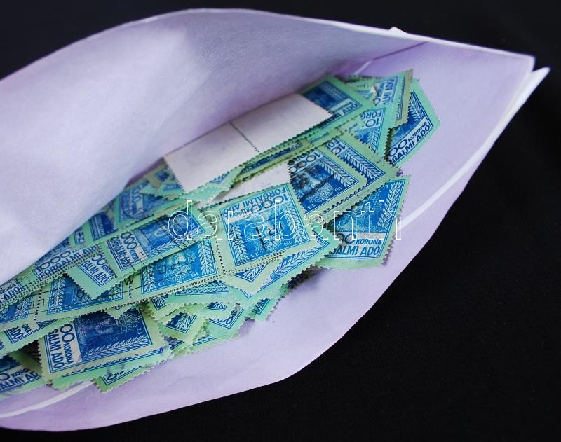 Beschreibung: Kb 800 db forgalmi adó bélyeg a 20-as évekből, borítékokban