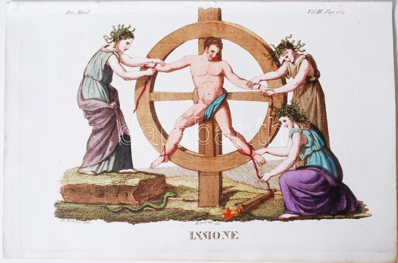 Girolamo Carattoni: Issione. Színezett acélmetszet az 1823-ban Milánóban kiadott Dizionario d'ogni mitologica e antichita vol. III illusztrációi közül, 15x23 cm