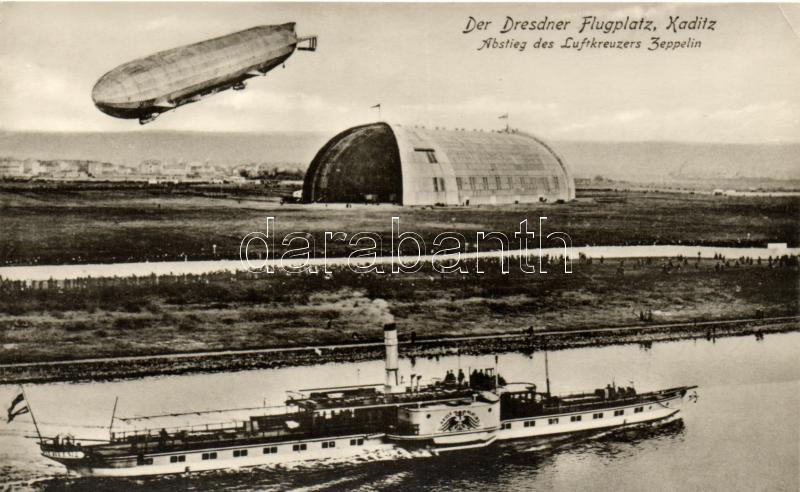 Dresden Kaditz airport with Zeppelin and SS Kaiser Wilhelm II (EK) https://www.darabanth.com/de/178-Fernauktion/178.0/Ansichtskarten/Fesselballons~600109/Dresden-Kaditz-airport-with-Zeppelin-and-SS-Kaiser-Wilhelm-II-EK~II626029