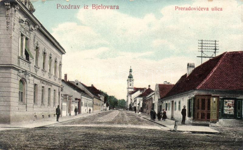 Belovar, Bjelovar, Preradovic street, the bookshop of Adolf Kolesar https://www.darabanth.com/de/178-Fernauktion/178.0/Ansichtskarten/Kroatien~300008/Belovar-Bjelovar-Preradovic-street-the-bookshop-of-Adolf-Kolesar~II624987