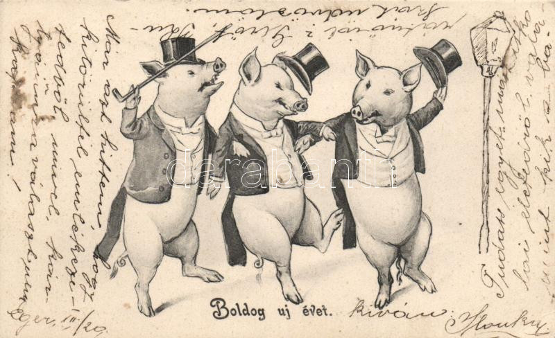 New Year, dancing, drunk pigs (EK) https://www.darabanth.com/de/178-Fernauktion/178.0/Ansichtskarten/Lots-im-Letzte-Minute~600137/New-Year-dancing-drunk-pigs-EK~II624441