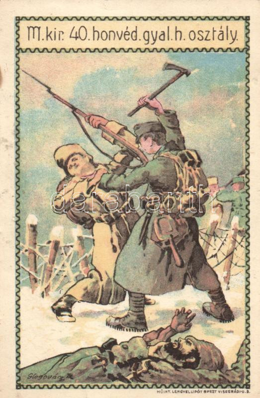 K.u.K. 40th infantry division, fighting, litho s: Glogovácz R. https://www.darabanth.com/de/178-Fernauktion/178.0/Ansichtskarten/Militaria~600103/KuK-40th-infantry-division-fighting-litho-s-Glogovacz-R~II627542