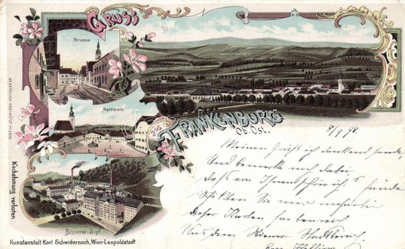 Beschreibung: 1898 Frankenburg, Oberösterreich, Zipf brewery litho
