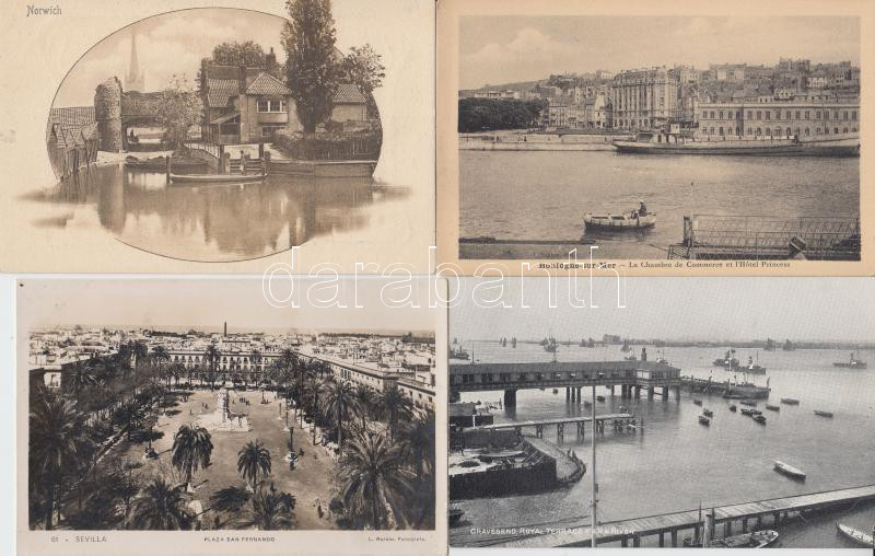 34 db régi, külföldi városképes lap, főleg angol, olasz, francia, monacói és spanyol / 34 foreign postcards, mainly from England, Italy, France, Monaco and Spain