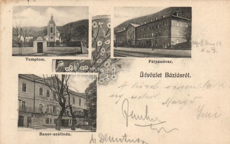 Báziás railway station, Hotel Bauer, church (fa) https://www.darabanth.com/de/178-Fernauktion/178.0/Ansichtskarten/Siebenburgen~300005/Bazias-railway-station-Hotel-Bauer-church-fa~II628964