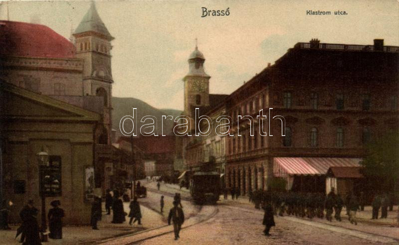 Brassó Cloister street with tram https://www.darabanth.com/de/178-Fernauktion/178.0/Ansichtskarten/Siebenburgen~300005/Brasso-Cloister-street-with-tram~II629198