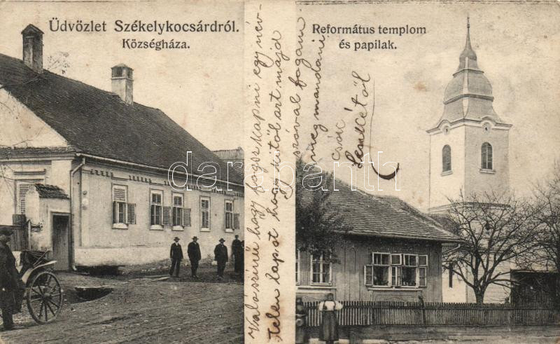Székelykocsárd town hall, Calvinist church (fl) https://www.darabanth.com/de/178-Fernauktion/178.0/Ansichtskarten/Siebenburgen~300005/Szekelykocsard-town-hall-Calvinist-church-fl~II626249
