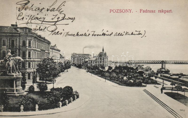 Pozsony Fadrusz quay, Maria Theresia statue (wet damage) https://www.darabanth.com/de/178-Fernauktion/178.0/Ansichtskarten/Slowakei~300006/Pozsony-Fadrusz-quay-Maria-Theresia-statue-wet-damage~II625277