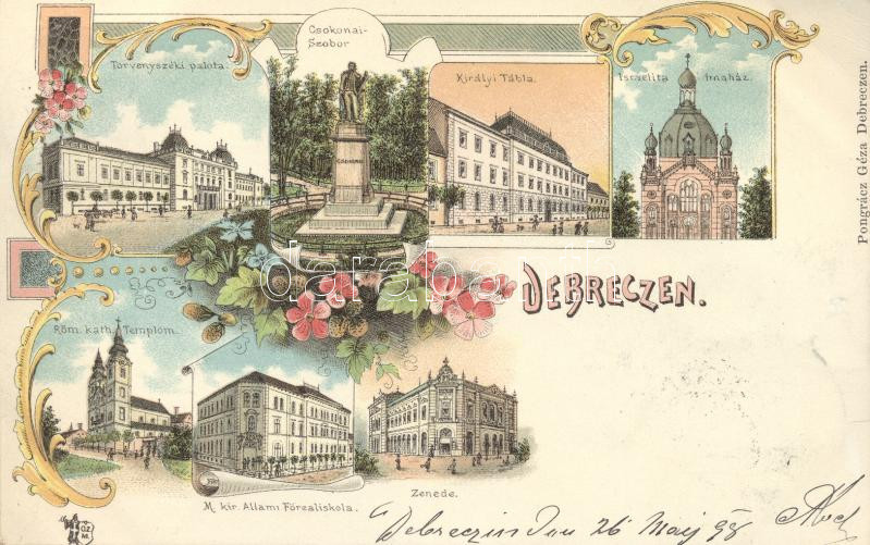 1898 Debrecen zsinagógával litho (EB) https://www.darabanth.com/de/178-Fernauktion/178.0/Ansichtskarten/Ungarn~300004/1898-Debrecen-zsinagogaval-litho-EB~II625962