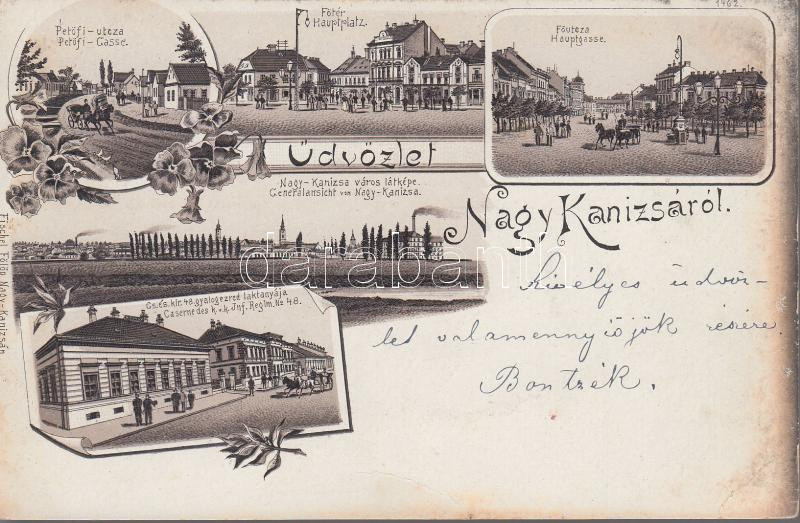 1898 Nagykanizsa 48. gyalogezred laktanyája, Fő utca és Fő tér, Petőfi... https://www.darabanth.com/de/178-Fernauktion/178.0/Ansichtskarten/Ungarn~300004/1898-Nagykanizsa-48-gyalogezred-laktanyaja-Fo-utca-es-Fo-ter-Petofi-utca-litho-EB~II628365