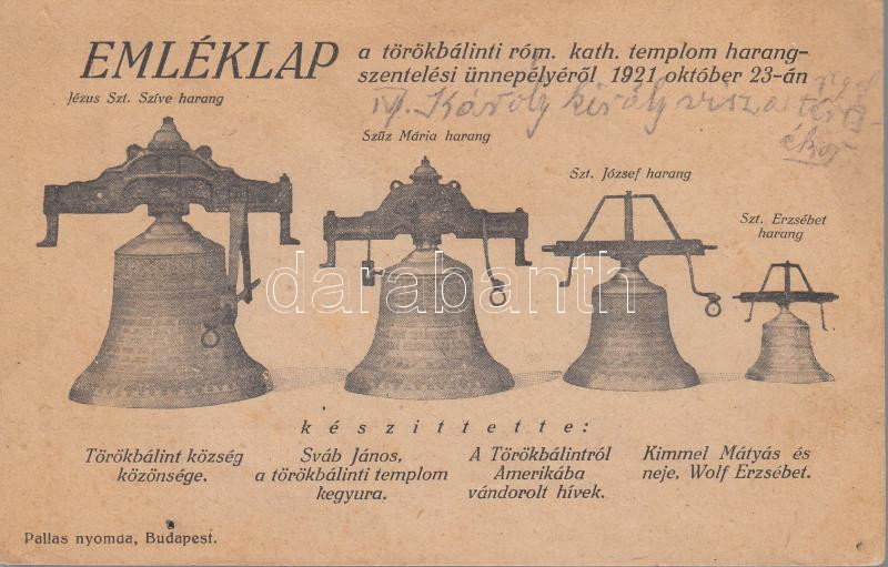 1921 Törökbálint a római katolikus templom harangszentelési ünnepélye,... https://www.darabanth.com/de/178-Fernauktion/178.0/Ansichtskarten/Ungarn~300004/1921-Torokbalint-a-romai-katolikus-templom-harangszentelesi-unnepelye-emleklap~II628250