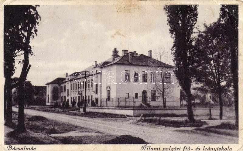 Bácsalmás Állami polgári fiú- és leányiskola (EB) https://www.darabanth.com/de/178-Fernauktion/178.0/Ansichtskarten/Ungarn~300004/Bacsalmas-Allami-polgari-fiu-es-leanyiskola-EB~II625847