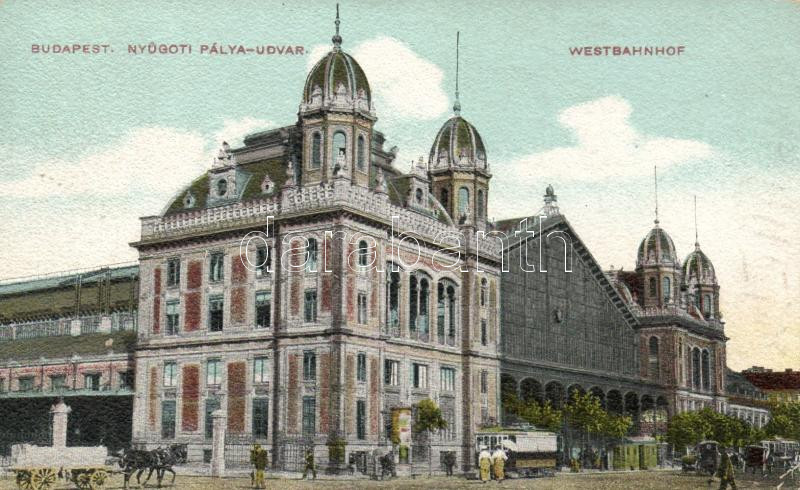 Budapest VI. Nyugati pályaudvar villamossal https://www.darabanth.com/de/178-Fernauktion/178.0/Ansichtskarten/Ungarn~300004/Budapest-VI-Nyugati-palyaudvar-villamossal~II625163