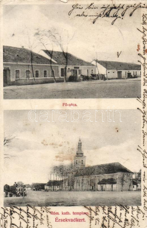 Érsekvadkert, Fő utca, római katolikus templom (kis szakadás / small t... https://www.darabanth.com/de/178-Fernauktion/178.0/Ansichtskarten/Ungarn~300004/Ersekvadkert-Fo-utca-romai-katolikus-templom-kis-szakadas-small-tear~II624229
