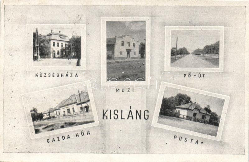 Kisláng mozi, Fő út, posta, Gazda kör, községháza (EK) https://www.darabanth.com/de/178-Fernauktion/178.0/Ansichtskarten/Ungarn~300004/Kislang-mozi-Fo-ut-posta-Gazda-kor-kozseghaza-EK~II627210