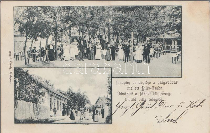 Piliscsaba Jozephy vendéglője, Klotild villa telep, Divald https://www.darabanth.com/de/178-Fernauktion/178.0/Ansichtskarten/Ungarn~300004/Piliscsaba-Jozephy-vendegloje-Klotild-villa-telep-Divald~II628404