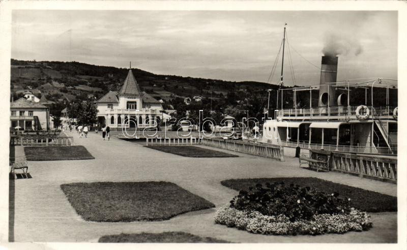 Beschreibung: Révfülöp, hajóállomás a Jókai gőzössel