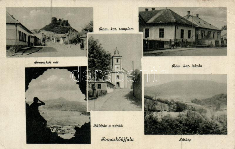 Beschreibung: Somoskőújfalu Somoskői vár, római katolikus templom és iskola (fa)