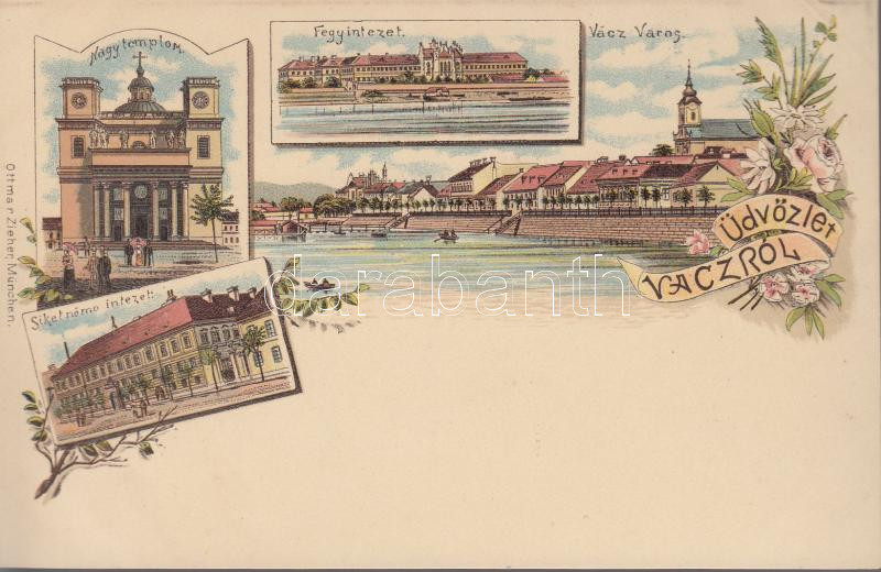 Vác fegyintézet, siket-néma intézet, Nagytemplom, litho https://www.darabanth.com/de/178-Fernauktion/178.0/Ansichtskarten/Ungarn~300004/Vac-fegyintezet-siket-nema-intezet-Nagytemplom-litho~II628360