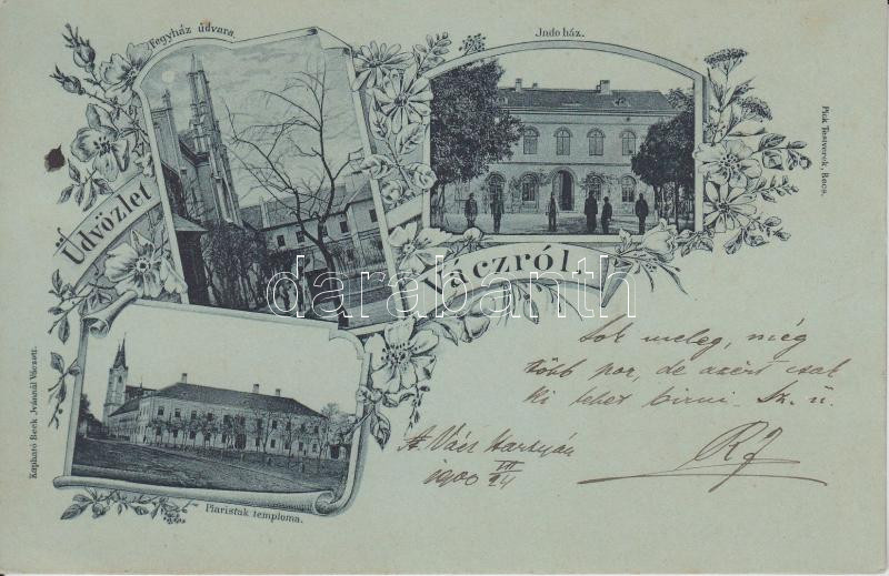 Vác indóház, a fegyház udvara, piarista templom https://www.darabanth.com/de/178-Fernauktion/178.0/Ansichtskarten/Ungarn~300004/Vac-indohaz-a-fegyhaz-udvara-piarista-templom~II628246