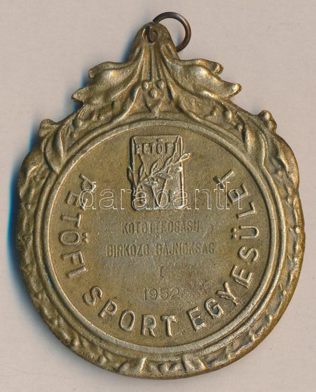 Törzsök Károly (1906-1964) 1952. "Petőfi Sport Egyesület - kötött fogású birkózó bajnokság" aranyozott Br díjérem szalag nélkül T:2-