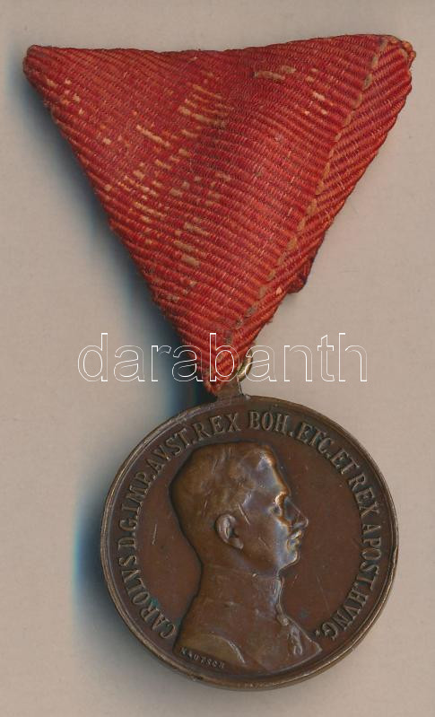 1917. Bronz Vitézségi Érem "IV. Károly / Fortitudini" mellszalaggal T:... https://www.darabanth.com/de/178-Fernauktion/178.0/Numismatik/Militaria~600152/1917-Bronz-Vitezsegi-Erem-IV-Karoly-Fortitudini-mellszalaggal-T2-ph-3Cbr3E1917-Medal-for~II627694