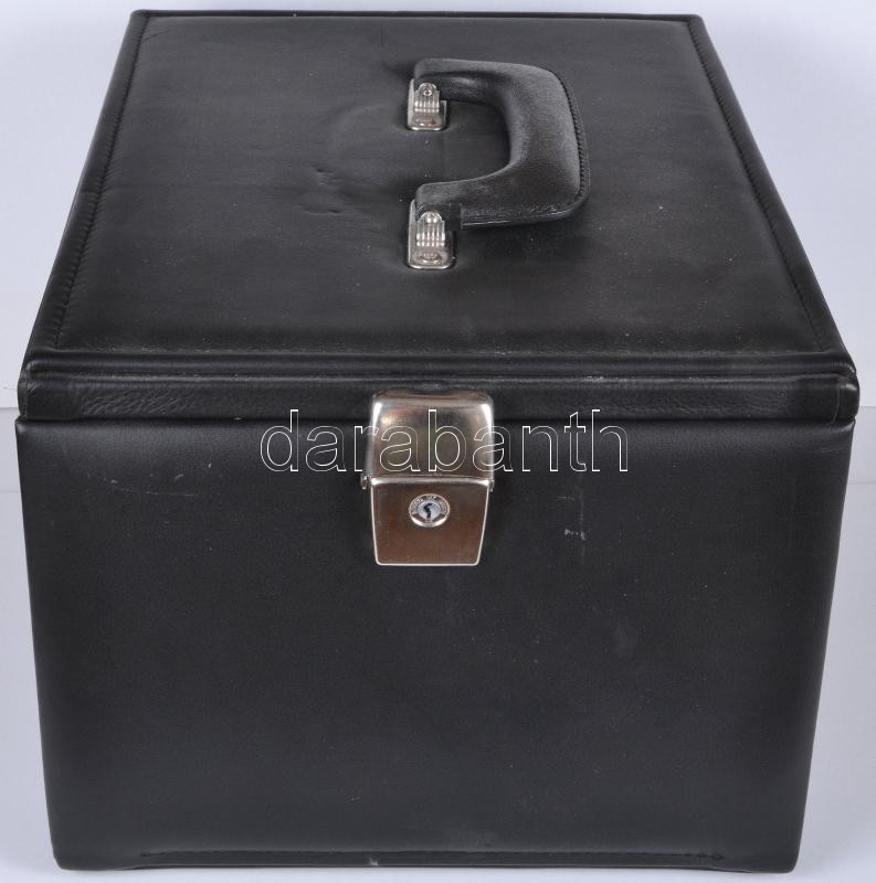 Beschreibung: Nagyalakú éremtartó koffer, benne 8db Leuchtturm típusú éremtartó tálca, 5féle méretű érme tárolására