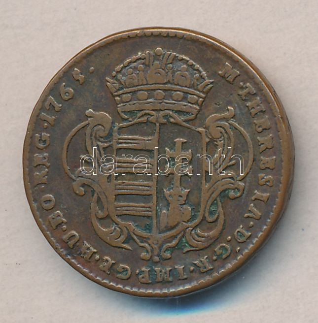 1765. Rézdénár "Mária Terézia" T:1- https://www.darabanth.com/de/178-Fernauktion/178.0/Numismatik/Ungarische-Munzen~600145/1765-Rezdenar-Maria-Terezia-T1-~II626059