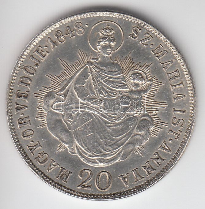 1848KB 20Kr Ag "V. Ferdinánd / Madonna" T:2 Jny. https://www.darabanth.com/de/178-Fernauktion/178.0/Numismatik/Ungarische-Munzen~600145/1848KB-20Kr-Ag-V-Ferdinand-Madonna-T2-Jny~II629504