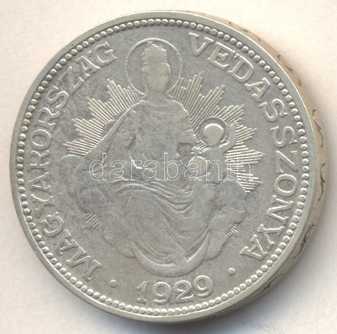 1929. 2P Ag "Madonna" T:2-,3 https://www.darabanth.com/de/178-Fernauktion/178.0/Numismatik/Ungarische-Munzen~600145/1929-2P-Ag-Madonna-T2-3~II625172
