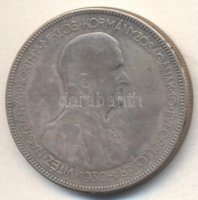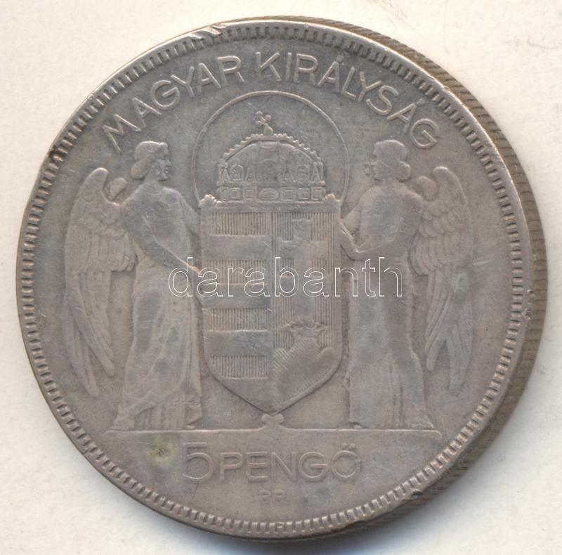 1930. 5P Ag "Horthy-jobbra" T:3 https://www.darabanth.com/de/178-Fernauktion/178.0/Numismatik/Ungarische-Munzen~600145/1930-5P-Ag-Horthy-jobbra-T3~II625208
