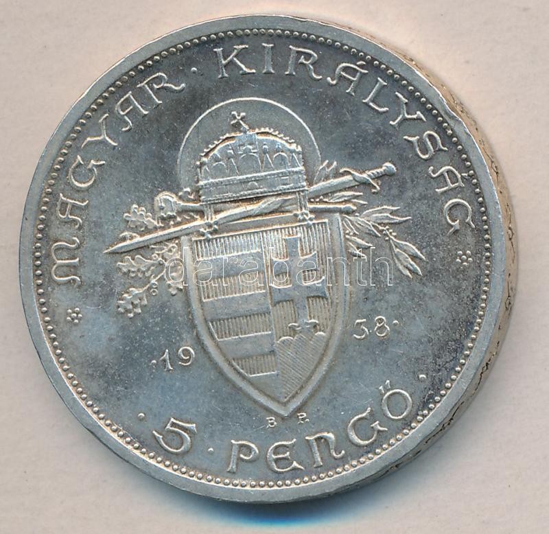 1938. 5P Ag "Szent István" T:2- ph. https://www.darabanth.com/de/178-Fernauktion/178.0/Numismatik/Ungarische-Munzen~600145/1938-5P-Ag-Szent-Istvan-T2-ph~II627379