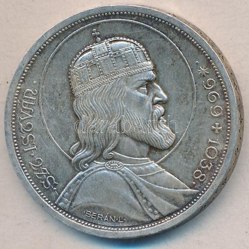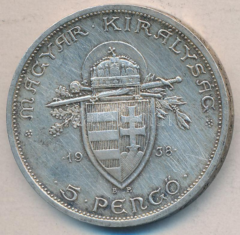 1938. 5P Ag "Szent István" T:2- https://www.darabanth.com/de/178-Fernauktion/178.0/Numismatik/Ungarische-Munzen~600145/1938-5P-Ag-Szent-Istvan-T2-~II625113