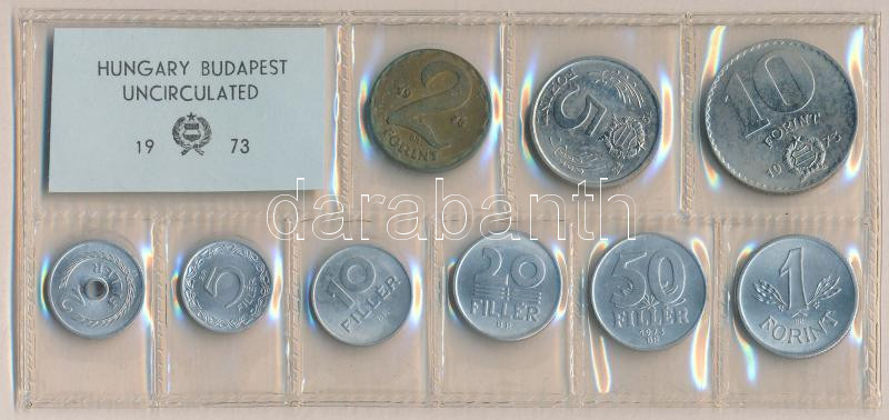 1973. 2f-10Ft 9db klf érmés forgalmi sor fóliatokban T:1 https://www.darabanth.com/de/178-Fernauktion/178.0/Numismatik/Ungarische-Munzen~600145/1973-2f-10Ft-9db-klf-ermes-forgalmi-sor-foliatokban-T1~II627831