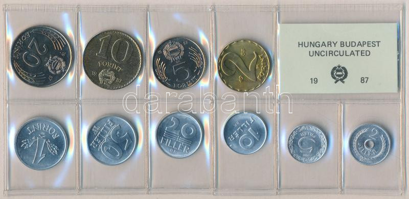1987. 2f-20Ft 10db klf érmés forgalmi sor fóliatokban T:1 https://www.darabanth.com/de/178-Fernauktion/178.0/Numismatik/Ungarische-Munzen~600145/1987-2f-20Ft-10db-klf-ermes-forgalmi-sor-foliatokban-T1~II627824