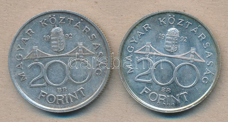 1992. 200Ft Ag "MNB" (2x) T:2,2- https://www.darabanth.com/de/178-Fernauktion/178.0/Numismatik/Ungarische-Munzen~600145/1992-200Ft-Ag-MNB-2x-T2-2-~II625350