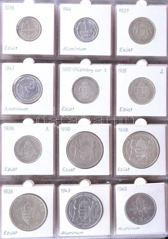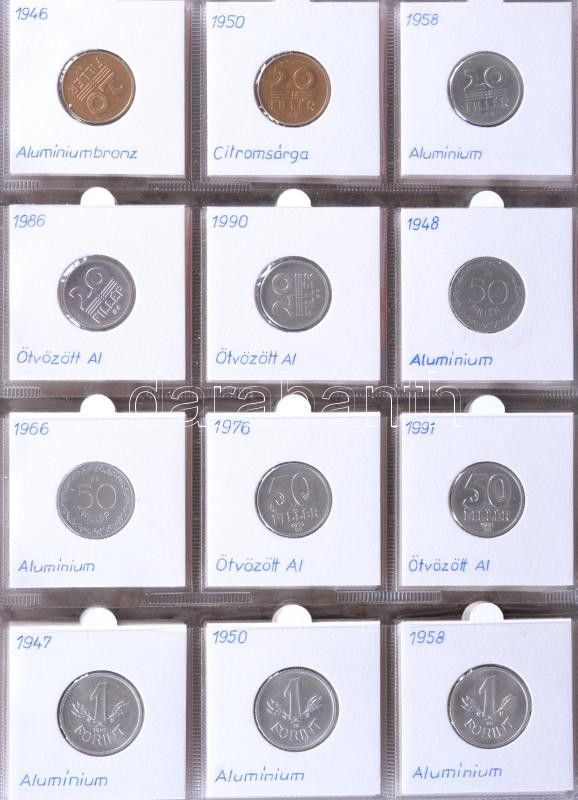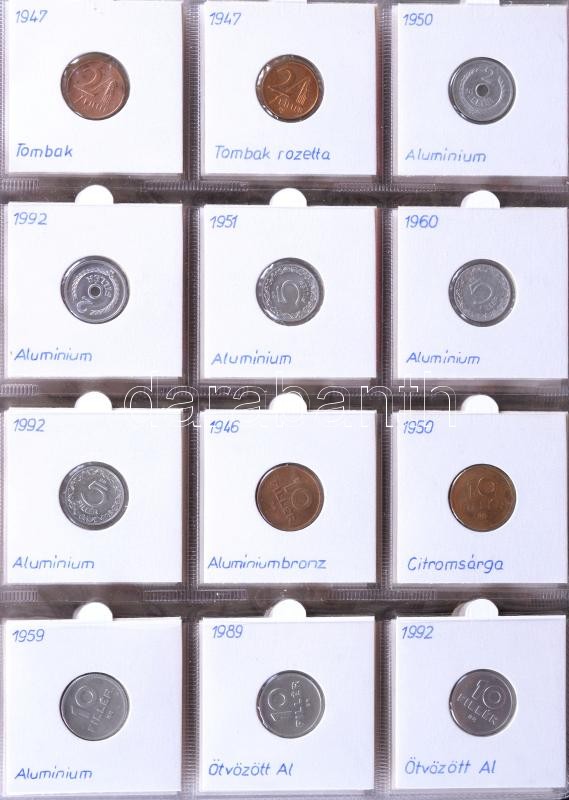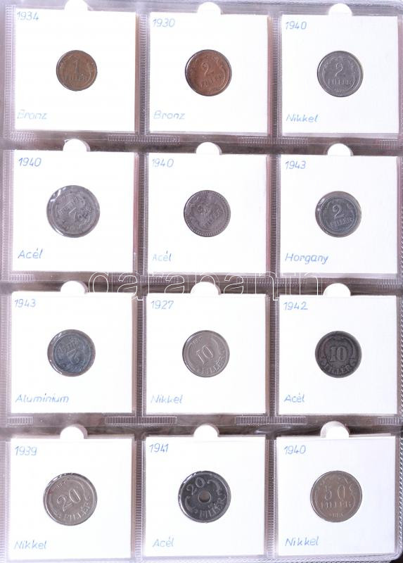 88db különféle érme 1930-as évektől kezdve albumba rendezve jobb darabokkal és ezüstökkel 1f, 2f, 10f, 20f, 50f, 1P / Ag, 2P / Ag, 5P / Ag, 1Ft, 2Ft, 5Ft / Ag, 10Ft, 20Ft, 50Ft, 100Ft, 200Ft / Ag T:1,2(3 kevés)